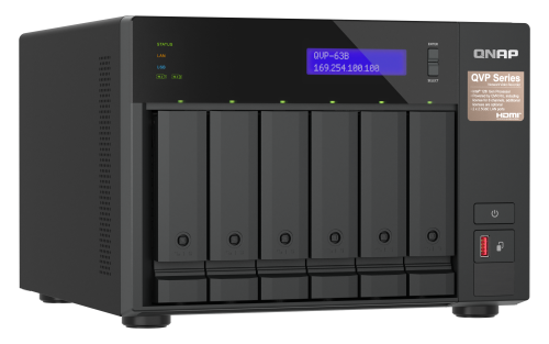 QNAP QVP-63B. Tipo: NAS. Tipo de chasis: Torre. Clase del dispositivo: Pequeñas y medianas empresas. Familia de procesador: Intel® Core™ i3. Memoria interna: 16 GB, Tipo de memoria interna: DDR4. Capacidad de almacenamiento total instalado: 0 TB