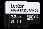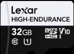 Lexar High-Endurance. Capacidad: 32 GB, Tipo de tarjeta flash: MicroSDHC, Clase de memoria flash: Clase 10, Tipo de memoria interna: UHS-I, Clase de velocidad UHS: Class 1 (U1), Clase de velocidad de vídeo: V10