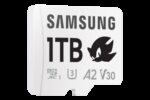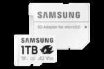 Samsung MB-MD1T0S. Capacidad: 1 TB, Tipo de tarjeta flash: MicroSDXC, Clase de memoria flash: Clase 10, Tipo de memoria interna: UHS-I, Velocidad de lectura: 180 MB/s, Velocidad de escritura: 130 MB/s, Clase de velocidad UHS: Class 3 (U3), Clase de velocidad de vídeo: V30. Funciones de protección: Protección contra caídas, Protección contra campos magnéticos, Resistente a la temperatura,…, Color del producto: Negro, Gris, Blanco