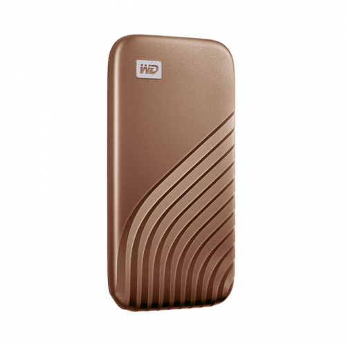 Western Digital My Passport. SDD, capacidad: 1000 GB. Conector USB: USB Tipo C, Versión USB: 3.2 Gen 2 (3.1 Gen 2). Velocidad de lectura: 1050 MB/s, Velocidad de escritura: 1000 MB/s. Protección mediante contraseña, Color del producto: Oro