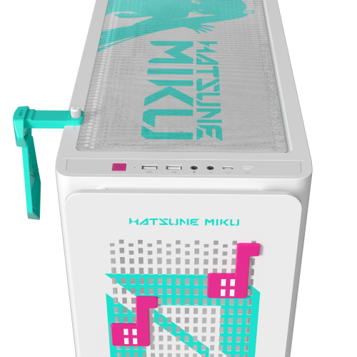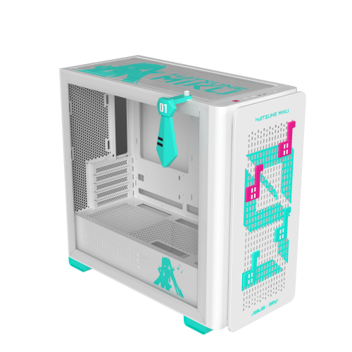ASUS A23 Hatsune Miku Edition. Tipo: PC, Color del producto: Turquesa, Blanco, Formas de factor de tarjeta madre soportadas: micro ATX, Mini-ITX. Diámetro de ventiladores frontales soportados: 120,140 mm, Diámetro de ventiladores traseros soportados: 120 mm, Diámetros de ventiladores superiores soportados: 120,140 mm. Tamaños de disco duro soportados: 2.5,3.5″. Ancho: 220 mm, Profundidad: 450 mm, Altura: 479 mm. Ancho del paquete: 290 mm, Profundidad del paquete: 566 mm, Altura del paquete: 493 mm