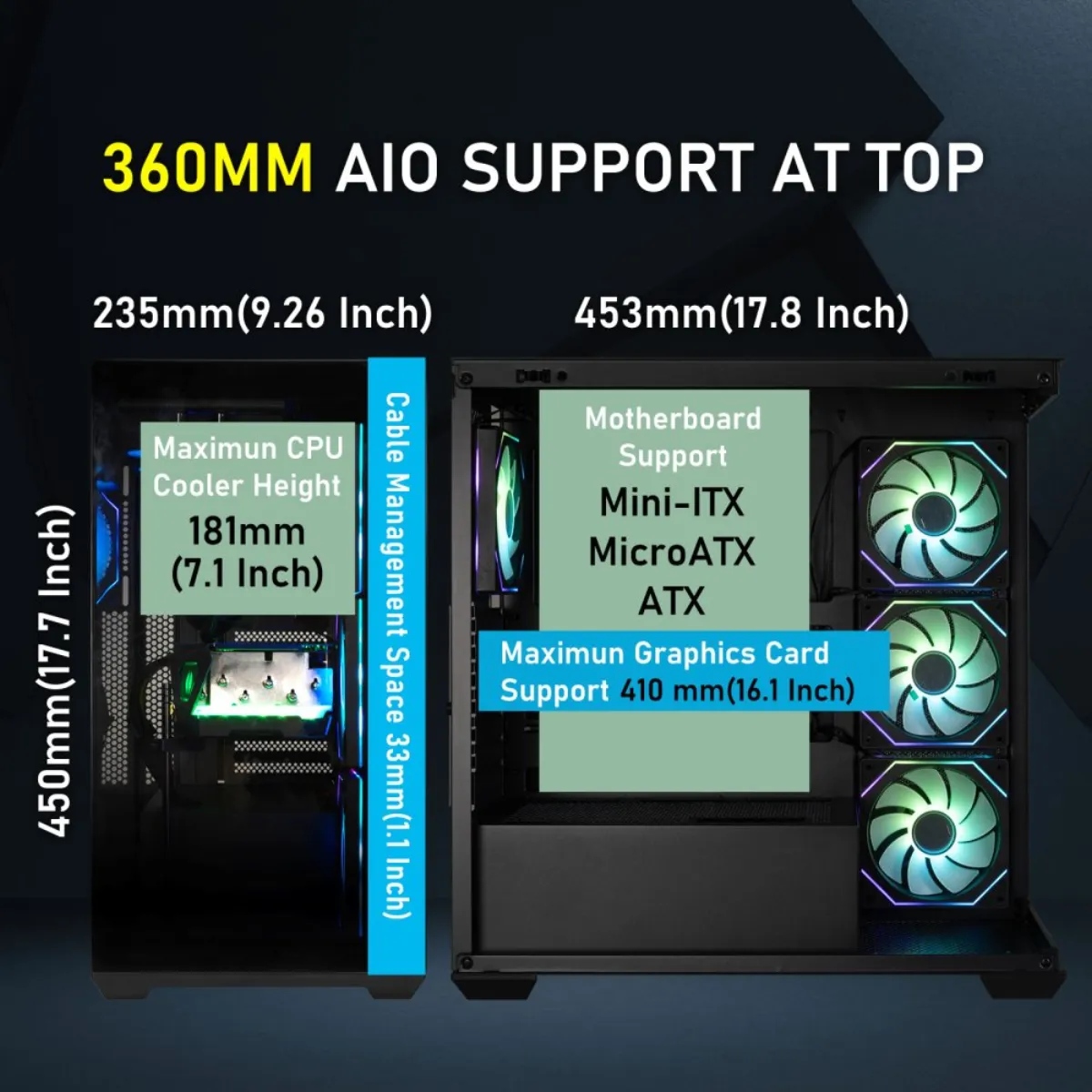 | Air Cooler Height Support | 181mm(7.1 inches) |