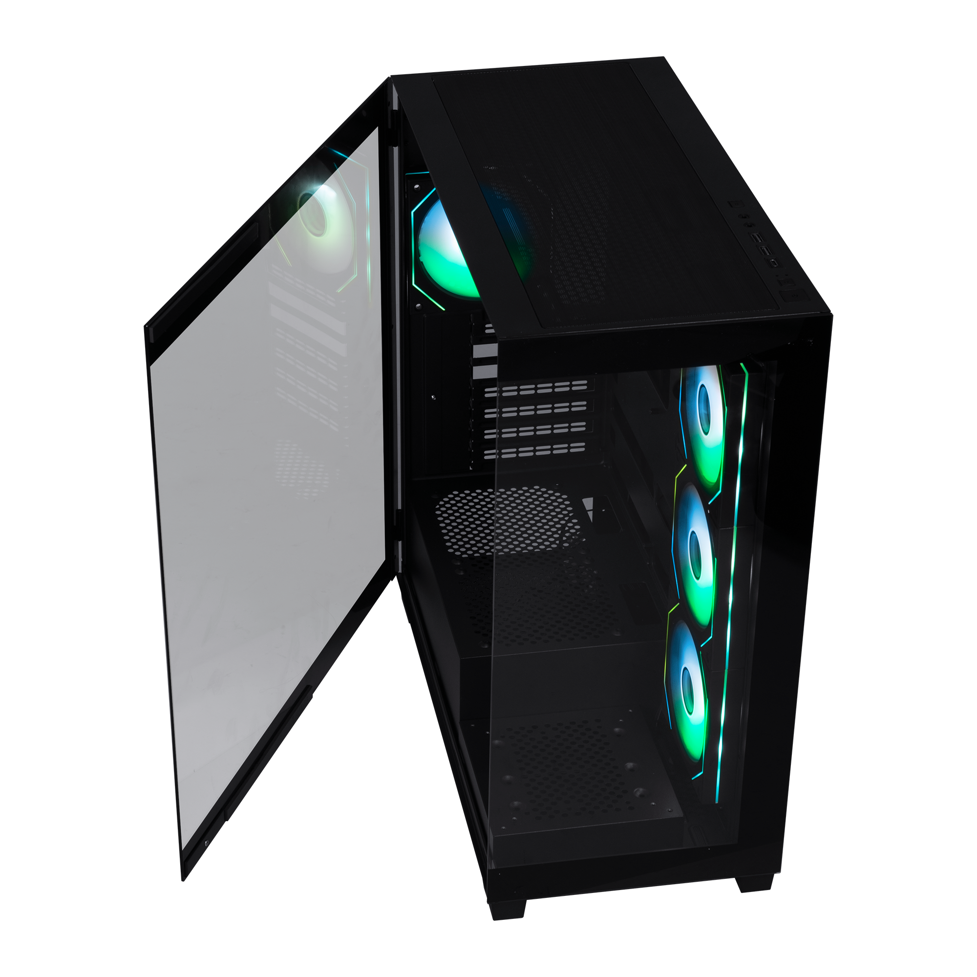 - 4 ventiladores ARGB de 120 mm (3 laterales y 1 trasero).