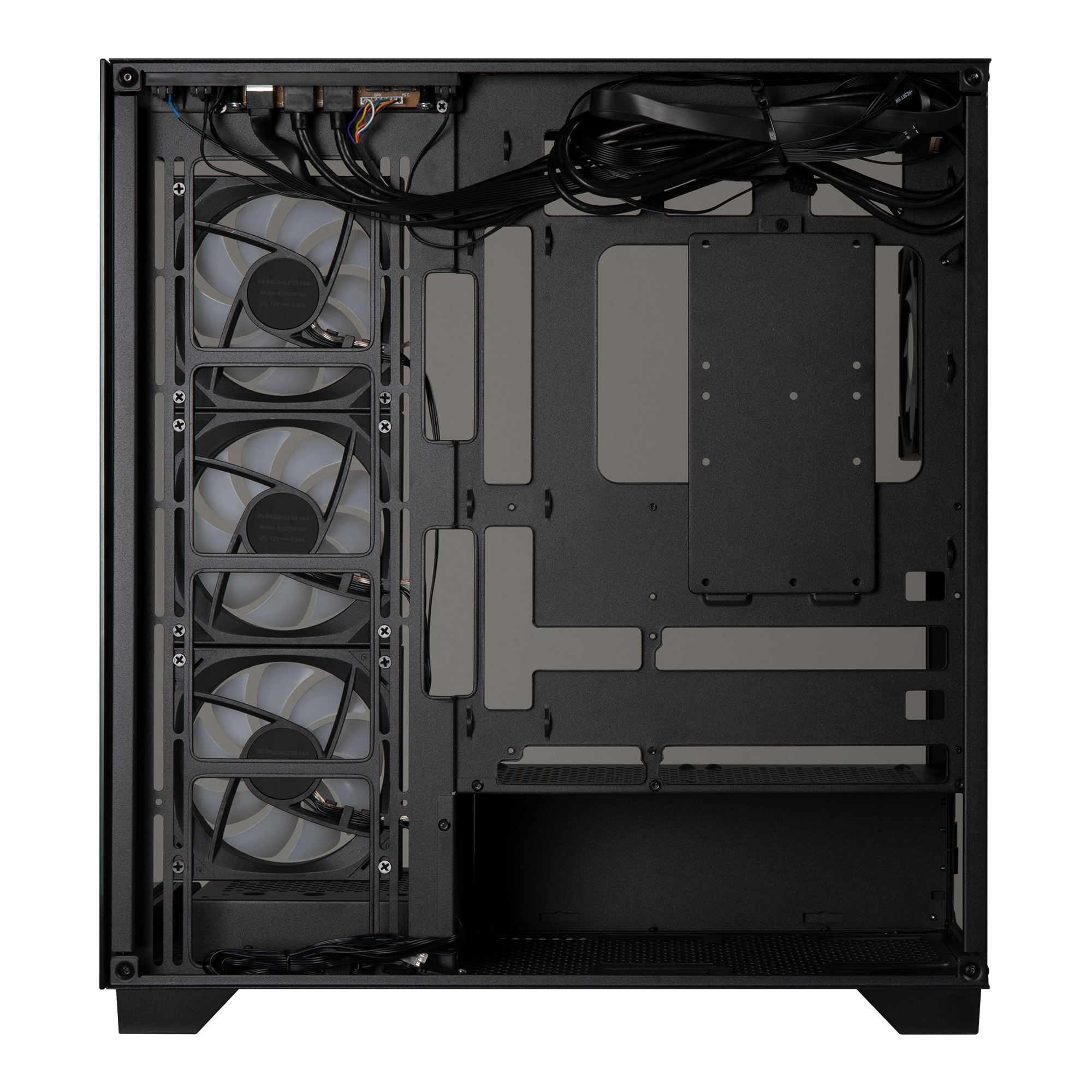 - Caja con visión panorámica gracias a sus paneles frontal y laterales de cristal templado