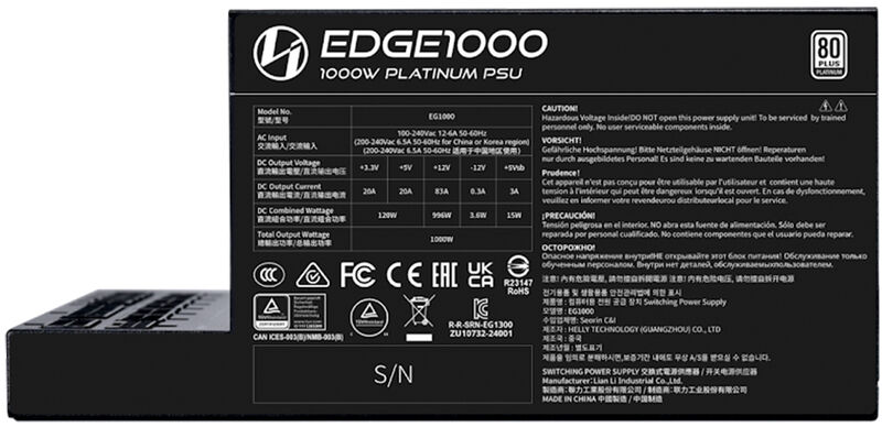 Fuente de Alimentación Modular Lian Li Edge 1000W 80+ Platino Negro