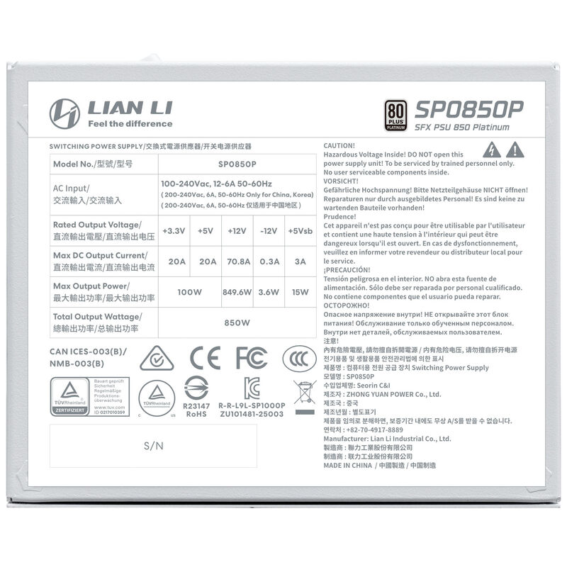 Fuente de Alimentación Modular Lian Li SFX SP 850W 80+ Platino Blanco