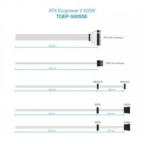 FUENTE TOOQ TQEP-500SSE 500W ATX. 12V 1,3. 20+4 PIN. 4xSATA. 2xIDE