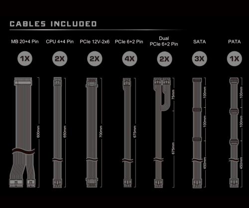 – Longitud del cable de alimentación de la placa base: 60 cm