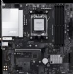 MSI PRO B840M-P WIFI6E. Fabricante de procesador: AMD, Socket de procesador: Zócalo AM5, Procesador compatible: AMD Ryzen 7000 Series, AMD Ryzen 8000 Series, AMD Ryzen 9000 Series. tipos de memoria compatibles: DDR5-SDRAM, Memoria interna máxima: 256 GB, Tipo de ranuras de memoria: DIMM. Interfaces de disco de almacenamiento soportados: M.2, Micro SATA III, Tipos de unidades de almacenamiento admitidas: HDD & SSD, Niveles RAID: 0, 1, 10. Tipo de interfaz ethernet: 2.5 Gigabit Ethernet, Controlador LAN: Realtek RTL8125D, Estándar Wi-Fi: Wi-Fi 6E (802.11ax). Componente para: PC, Factor de forma: micro ATX, Familia del chipset: AMD