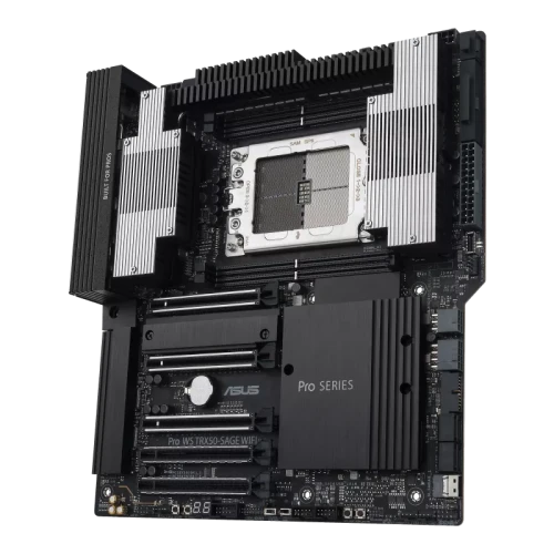 ASUS Pro WS TRX50-SAGE WIFI. Fabricante de procesador: AMD, Socket de procesador: Socket sTR5, Procesador compatible: AMD Ryzen™ Threadripper™. tipos de memoria compatibles: DDR5-SDRAM, Tipo de ranuras de memoria: DIMM, Canales de memoria: Cuatro canales. Interfaces de disco de almacenamiento soportados: M.2, SATA III, Tipos de unidades de almacenamiento admitidas: HDD & SSD, Niveles RAID: 0, 1, 5, 10. Conector USB: USB tipo A, USB Tipo C. Tipo de interfaz ethernet: 2.5 Gigabit Ethernet, 10 Gigabit Ethernet, Controlador LAN: Intel I226-LM, Estándar Wi-Fi: Wi-Fi 7 (802.11be)