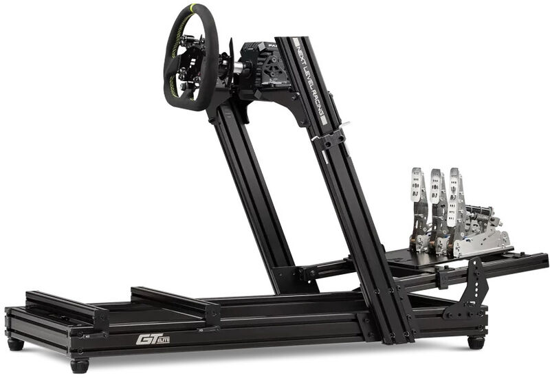 Construido rígidamente para soportar volantes de tracción directa y pedales profesionales.