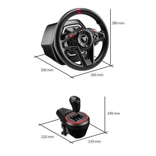 Experimente tanto el cambio de marchas manual como el Force Feedback híbrido de la T128. Ergonomía y sensaciones optimizadas para todo tipo de simulación sobre 4 ruedas y más. Accesible y ergonómico:. Fácil de agarrar gracias al pomo ergonómico «Typé Sport».La lectura óptica de la posición confiere a la T128 solidez, fluidez y flexibilidad. Compatible con PC y una gran cantidad de juegos Xbox, el TH8S ya está implementado para una experiencia Plug & Play.T128 con sus dos pedales y palas magnéticos para una medición precisa de la posición. Rejilla en «H»:Sin acciones superfluas: la rejilla «H» de 8 posiciones (7+1) permite pasar directamente por las 7 marchas más la marcha atrás, para adaptarse a todo tipo de juegos y vehículos. Tecnología H.E.A.R.T. compartida: Sin interruptores ni potenciómetros Tact (para una vida útil ilimitada) gracias a la tecnología H.E.A.R.T con sensores magnéticos, para un nivel de precisión idéntico durante toda la vida útil del T128 y el TH8S .Un paquete ultra versátil:El paquete T128 y TH8S hace que la experiencia no solo sea inmersiva, sino también extremadamente práctica para diferentes tipos de juegos (carreras, agricultura, camiones). Experiencia de conducción precisa y fiable: Cambio de marchas sencillo y preciso gracias a la rejilla en H y a la palanca metálica corta.