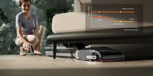 Dreame H15 Pro Aspiradora en seco y húmedo. El primer aspirador en seco y húmedo de Dreame que se encarga de los bordes de 2 cm* más difíciles. El H15 Pro, con el brazo robótico con AI Descend Reach, no deja ningún hueco* sin limpiar gracias a su auténtica cobertura de triple borde, que elimina los residuos junto a paredes y bordes, para que no tengas que limpiarlos a mano después. El H15 Pro se reclina por completo hasta 180° y se pega al suelo fácilmente*.El depósito de agua usada retiene de forma segura el agua sucia para evitar daños en el motor principal y permitir que el aspirador mantenga una potencia de succión de hasta 21.000 Pa*, incluso al limpiar bajo camas y sofás.El H15 Pro hace que la limpieza suba de nivel, con una potencia de succión de 21.000 Pa* que elimina fácilmente para varios tipos de suciedad, húmeda o seca, en la superficie o incrustada. Nada se le resiste, sean espaguetis, granos de café o esa molesta grasa de la cocina. Elimina 1000 pelos secos y húmedos* en cada limpiezaEl raspador rígido con púas TangleCut™ cuenta con cuchillas afiladas que cortan sin esfuerzo pelo de mascotas y cabellos largos, para prevenir atascos en el cepillo y que no tengas que desenredarlo manualmente.