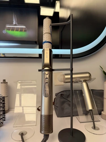 Es un secador de pelo compacto, plegable y de alta velocidad con una pantalla magnética inteligente que detecta automáticamente qué accesorio estás usando y ajusta el flujo de aire y la temperatura por ti. Está diseñado para ser fácil de usar para principiantes, pero aún así ofrece resultados de nivel profesional. El motor funciona a 110,000 RPM y es sorprendentemente silencioso. También utiliza tecnología de iones negativos para reducir el frizz y aumentar el brillo. Han venido estilistas y han dicho que les recuerda a herramientas que cuestan el doble. Accesorios incluidos (6 en total).