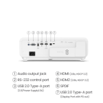 BenQ X500i. Brillo de proyector: 2200 lúmenes ANSI, Tecnología de proyección: DLP, Resolución original del proyector: 2160p (3840×2160). Tipo de fuente luminosa: LED, Duración de la fuente luminosa: 20000 h, Vida útil de la fuente luminosa (modo económico): 30000 h. Intervalo de longitud focal: 10.2~12.24 mm, Rango de apertura: 2,53 – 2,73, Alcance de zoom: 1.2:1. Tipo de serie de interfaz: RS-232. Wi-Fi estándares: 802.11a, 802.11b, 802.11g, Wi-Fi 4 (802.11n), Wi-Fi 5 (802.11ac)