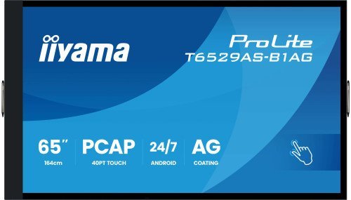 MONITOR IIYAMA TACTIL 65″ 4K 20P TACTIL (T6529AS-B1AG) / ANDROID 14/ USO 24/7 / IRX1 / HDMI X 2 / USB-C / HORIZ. Y APAISADO / 420CD/M2 (TOUCH), 4000:1, 6.5MS, USB TOUCH / RS232C / RJ45 / 32GB ROM / 2G RAM / 1GB / WIFI / VESA 400X400MM