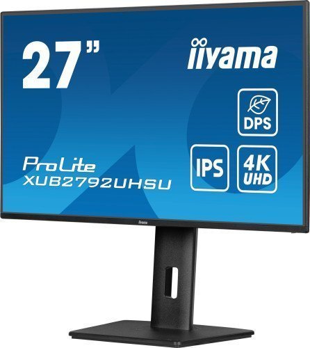 iiyama ProLite XUB2792UHSU-B6. Diagonal de la pantalla: 68,6 cm (27″), Resolución de la pantalla: 3840 x 2160 Pixeles, Tipo HD: 4K Ultra HD, Tecnología de visualización: LED, Tiempo de respuesta: 4 ms, Relación de aspecto nativa: 16:9, Ángulo de visión, horizontal: 178°, Ángulo de visión, vertical: 178°. Altavoces incorporados. Conector USB incorporado, Versión de conector USB: 3.2 Gen 1 (3.1 Gen 1). montaje VESA, Ajustes de altura. Color del producto: Negro