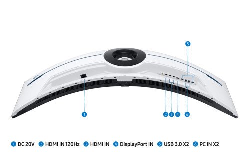Samsung Odyssey S57CG952NU. Diagonal de la pantalla: 144,8 cm (57″), Resolución de la pantalla: 7680 x 2160 Pixeles, Tecnología de visualización: LED, Tiempo de respuesta: 1 ms, Relación de aspecto nativa: 32:9, Ángulo de visión, horizontal: 178°, Ángulo de visión, vertical: 178°. Conector USB incorporado, Versión de conector USB: 3.2 Gen 1 (3.1 Gen 1). montaje VESA, Ajustes de altura. Color del producto: Negro, Blanco