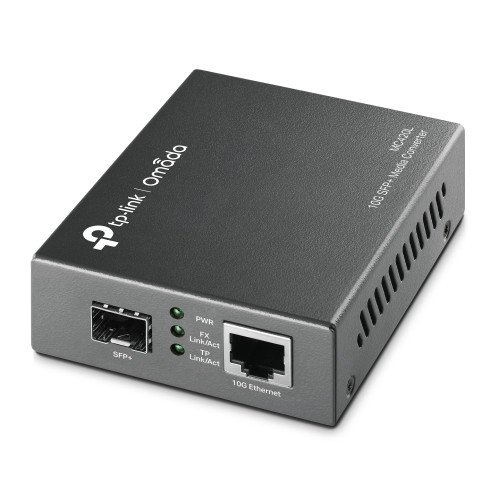 TP-Link Omada MC212CS-2. Rango máximo de transferencia de datos: 1000 Mbit/s, Estándares de red: IEEE 802.3, IEEE 802.3ab, IEEE 802.3i, IEEE 802.3u, IEEE 802.3x, IEEE 802.3z, Tipo de interfaz ethernet: Gigabit Ethernet. Distancia de transferencia máxima: 2000 m, Longitud de onda: 1550 nm, Estructura de modo de fibra: Monomodo. Indicadores LED: Actividad, Enlace, Poder, Color del producto: Negro. Conector fibra óptica: SC/UPC, Tecnología de conectividad: Alámbrico. Voltaje de entrada: 9 V, Corriente de entrada: 0.6 A