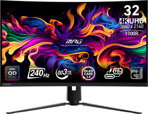 MSI MONITOR MPG 321CURX QD-OLED. 31.5″ QD-OLED CURVO 1700R. 3840×2160 . 240HZ. NEGRO