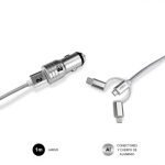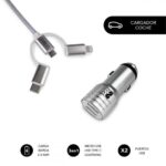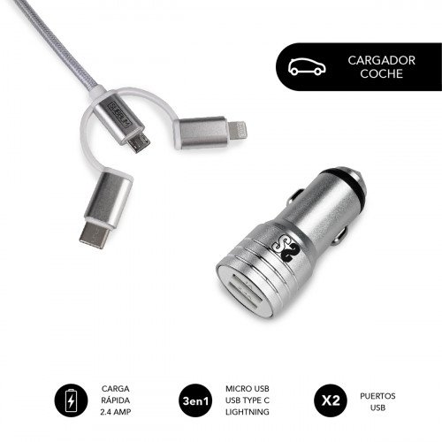 SUBBLIM Cargador Coche 2xUSB Dual Car Charger Alum 2.4A + Cable 3 in 1 Silver